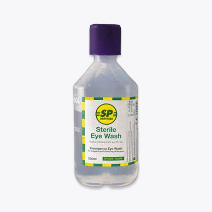 pH neutral solution, eye wash kits, steripods, eye wash signs and eye wash bottles.